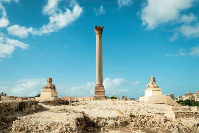 Your guided tour begins at the Library of Alexandria, a modern architectural marvel and cultural beacon built near the ancient library’s original site. Continue to the Catacombs of Kom El Shoqafa, one of the largest Roman burial sites in the world, blending Egyptian, Greek, and Roman art. Visit the Pompey’s Pillar, a towering monument from the 3rd century, before heading to the impressive Qaitbay Citadel, built on the site of the legendary Lighthouse of Alexandria.