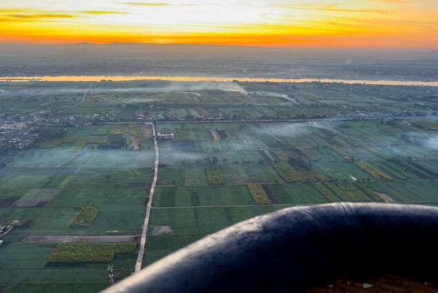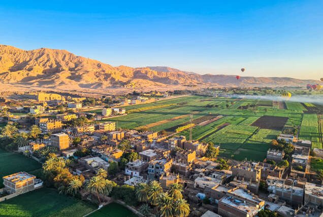 From above, you’ll witness iconic landmarks such as the Temple of Hatshepsut, the Valley of the Kings, and the Colossi of Memnon, all set against the lush green farmlands of the Nile.